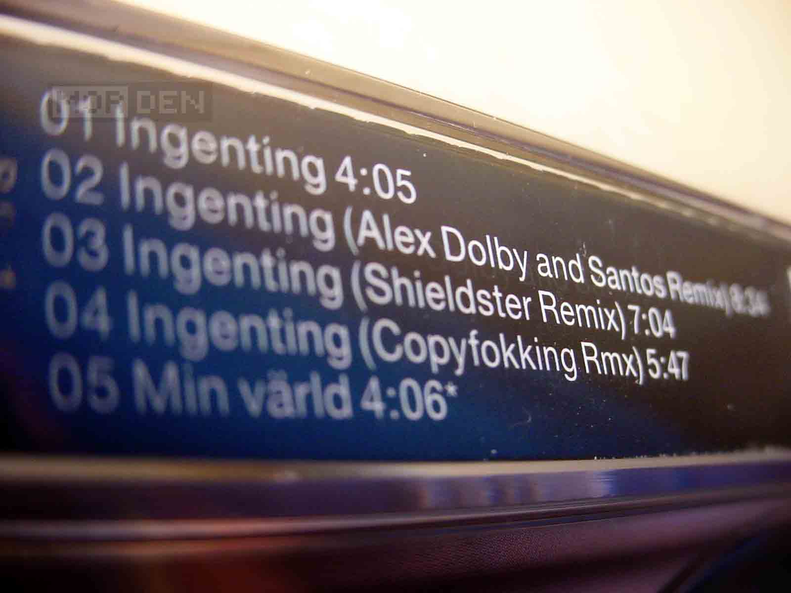 The single is out and I got it, which I'm sure you can tell from the photos featured in this entry. It's your standard variety maxi-single which includes two new tracks, the previously mentioned "Ingenting", aswell as the new "Min Värld", plus three unexpected remixes.