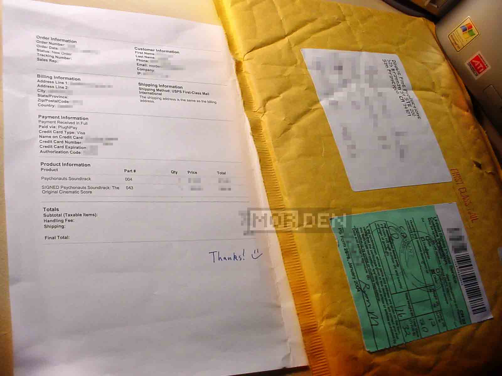 On a humorous note, when I took the invoice out of the package, I've noticed a small "Thanks :)" written on it. That's how Double Fine shows you that you're not just another customer. You're special.
