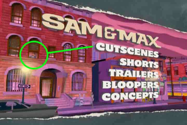 Since the DVD is a hybrid, you can either pop it into your PC or a standard DVD player. Almost all of the extra material is stored as DVD video. From the menu you can choose the following options: Cutscenes, Shorts, Trailers, Bloopers and Concepts. The cutscene menu contains all of the non gameplay sequences from all of the episodes. You can simply choose an episode and enjoy the story without a single point or click.